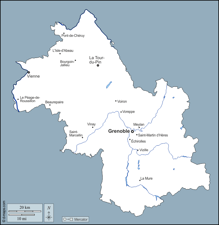 Beaurepaire, Bourgoin-Jallieu, Grenoble, L'Isle-d'Abeau, La Mure, La Tour-du-Pin, Le Péage-de-Roussillon, Meylan, Pont-de-Chéruy, Saint-Marcellin, Saint-Martin d’Hères, Vienne, Vinay, Vizille, Voiron, Voreppe, Échirolles.