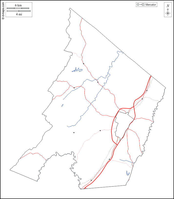 d-maps > الولايات المتحدة > فيرجينيا > فريدريك كاونتي > الخطوط العريضة, هيدروغرافيا, المدن الرئيسية, الطرق, أبيض