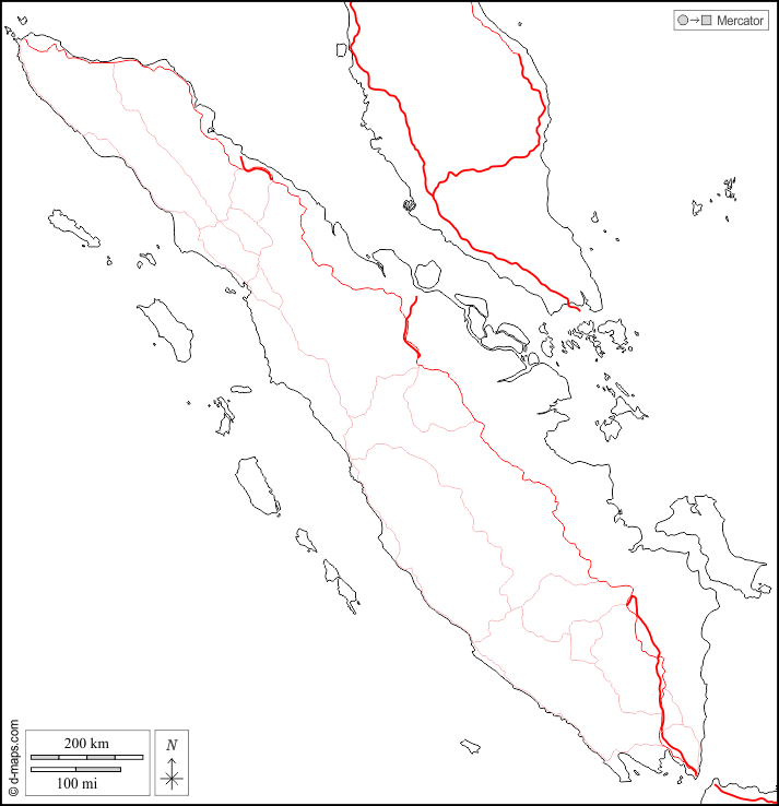 d-maps > اسيا > إندونيسيا > سومطرة > حدود, الطرق, أبيض
