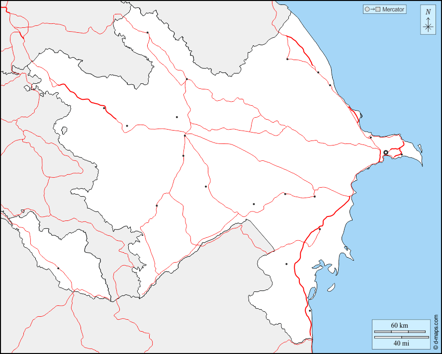 d-maps > اسيا > أذربيجان > حدود, المدن الرئيسية, الطرق