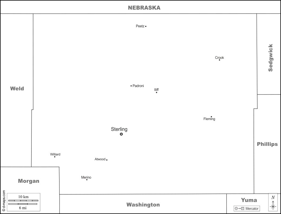 d-maps > الولايات المتحدة > كولورادو > لوغان كونتي > حدود, المدن الرئيسية, أسماء, أبيض