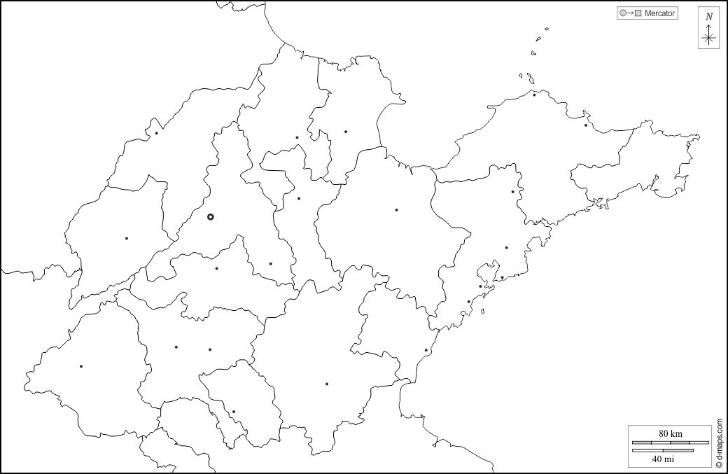 d-maps > اسيا > الصين > شاندونغ > حدود, محافظات, المدن الرئيسية, أبيض