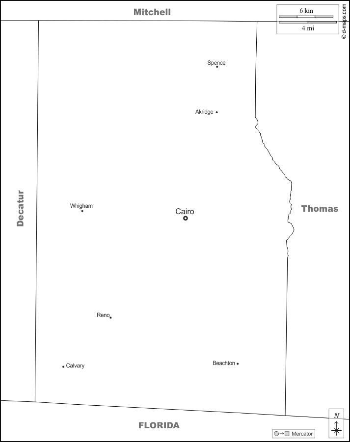 d-maps > الولايات المتحدة > جورجيا > مقاطعة غرادي > حدود, المدن الرئيسية, أسماء, أبيض