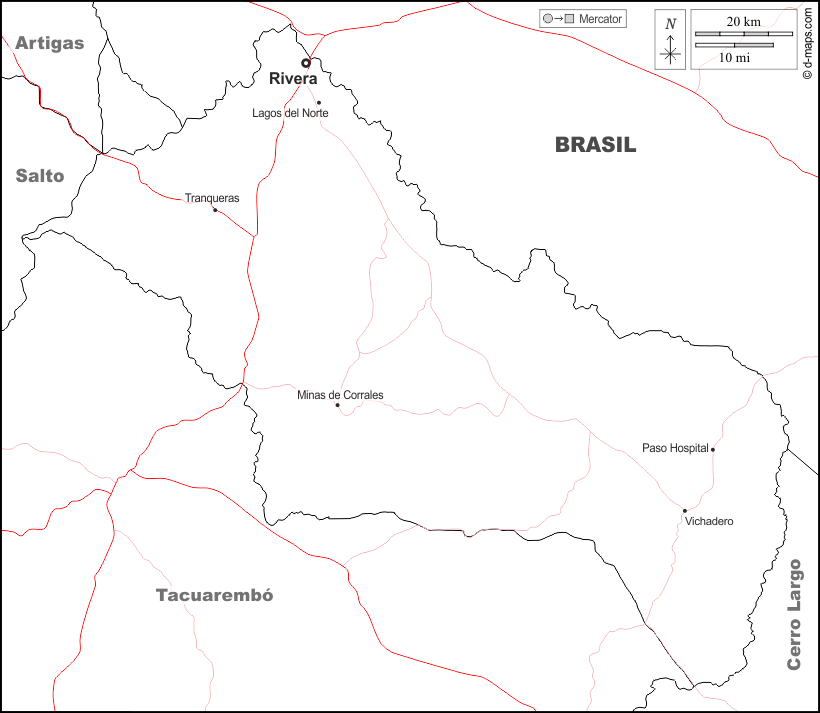 d-maps > أمريكتان > أوروغواي > إدارة ريفيرا > حدود, المدن الرئيسية, الطرق, أسماء, أبيض