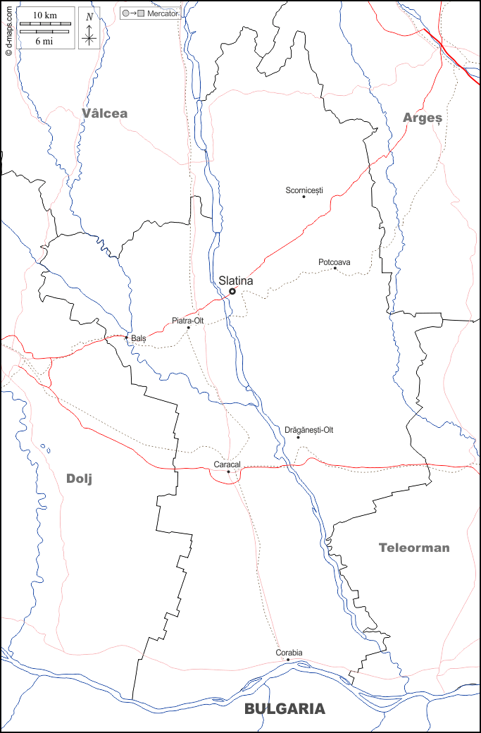 d-maps > أوروبا > رومانيا > أولت > حدود, هيدروغرافيا, المدن الرئيسية, الطرق, أسماء, أبيض