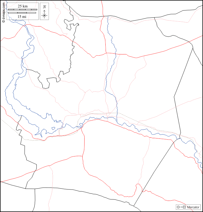 d-maps > اسيا > سوريا > مُحافظة الرقة > حدود, هيدروغرافيا, الطرق, أبيض