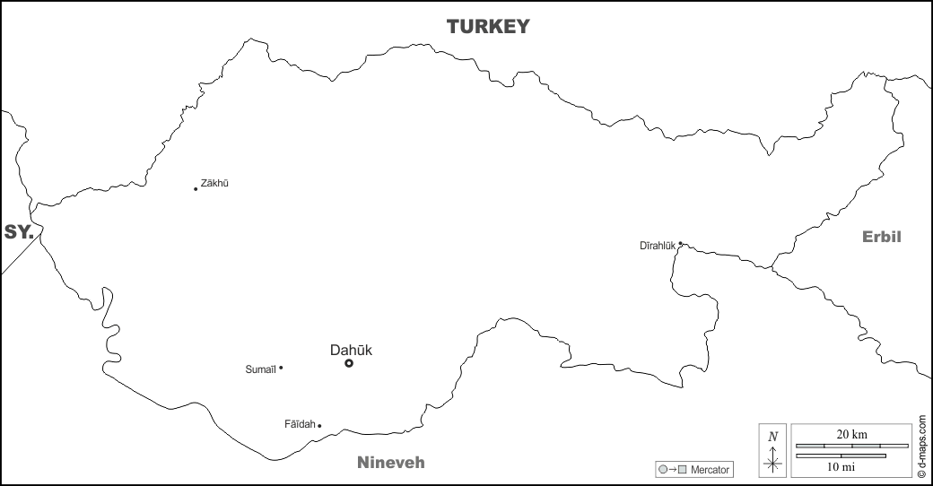 d-maps > اسيا > العراق > محافظة دهوك > حدود, المدن الرئيسية, أسماء, أبيض