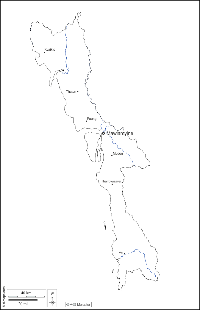 اسيا > بورما ميانمار > ولاية مون > الخطوط العريضة, هيدروغرافيا, المدن الرئيسية, أسماء, أبيض