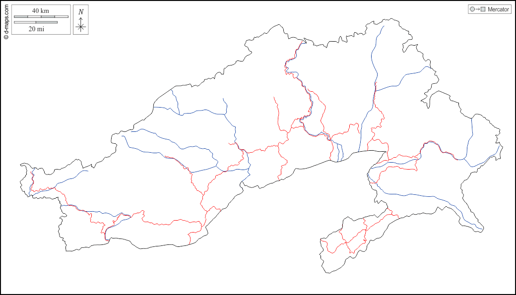 d-maps > اسيا > الهند > أروناجل برديش > الخطوط العريضة, هيدروغرافيا, الطرق, أبيض