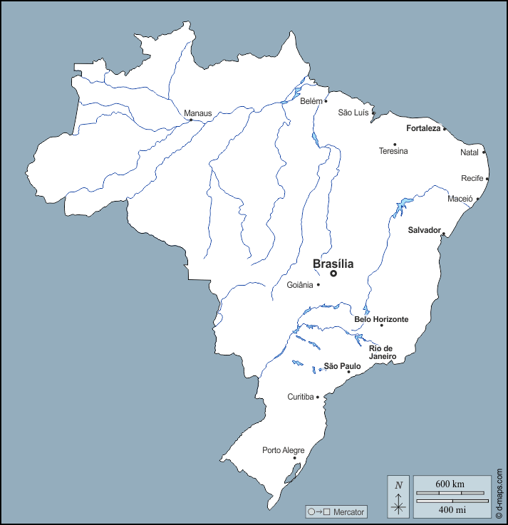 d-maps > أمريكتان > البرازيل > البرازيل > الخطوط العريضة, هيدروغرافيا, المدن الرئيسية, أسماء