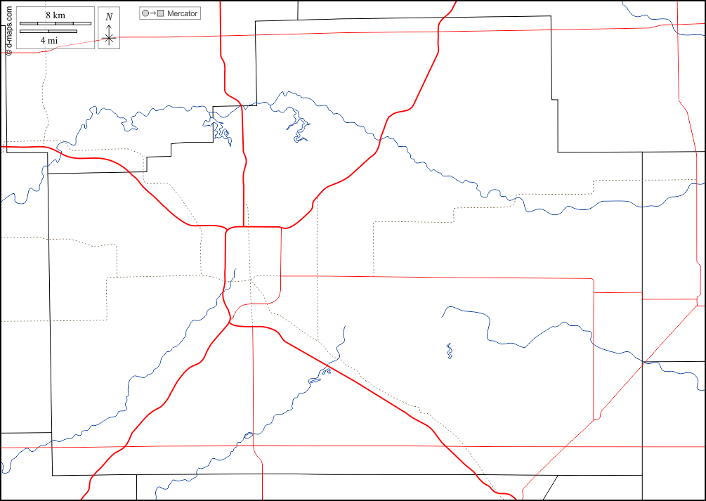 d-maps > الولايات المتحدة > إلينوي > مقاطعة ماكلين > حدود, هيدروغرافيا, الطرق, أبيض