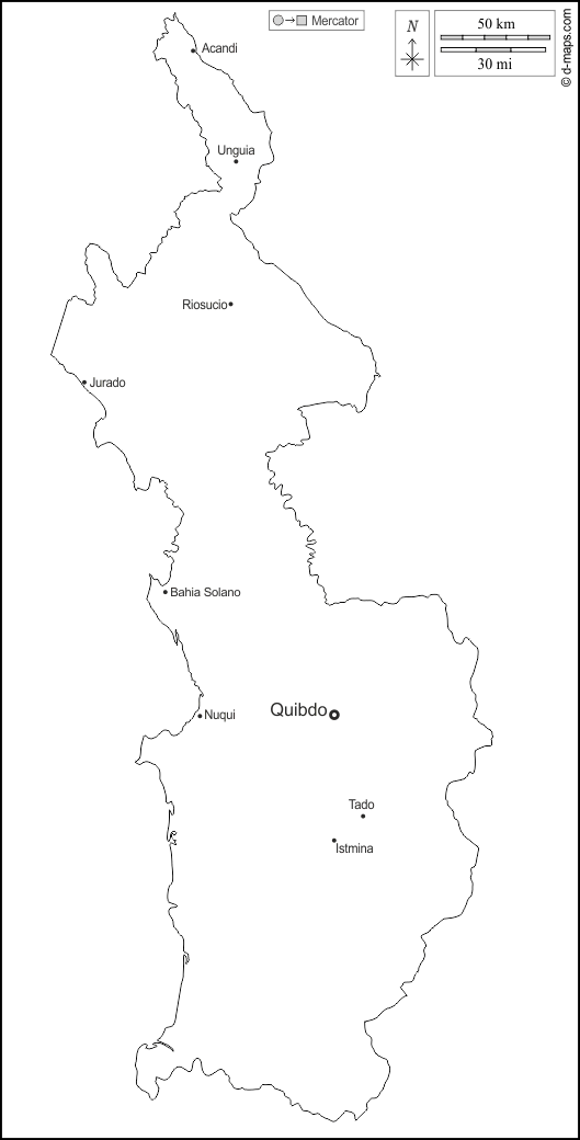 أمريكتان > كولومبيا > قسم تشوكو > الخطوط العريضة, المدن الرئيسية, أسماء, أبيض
