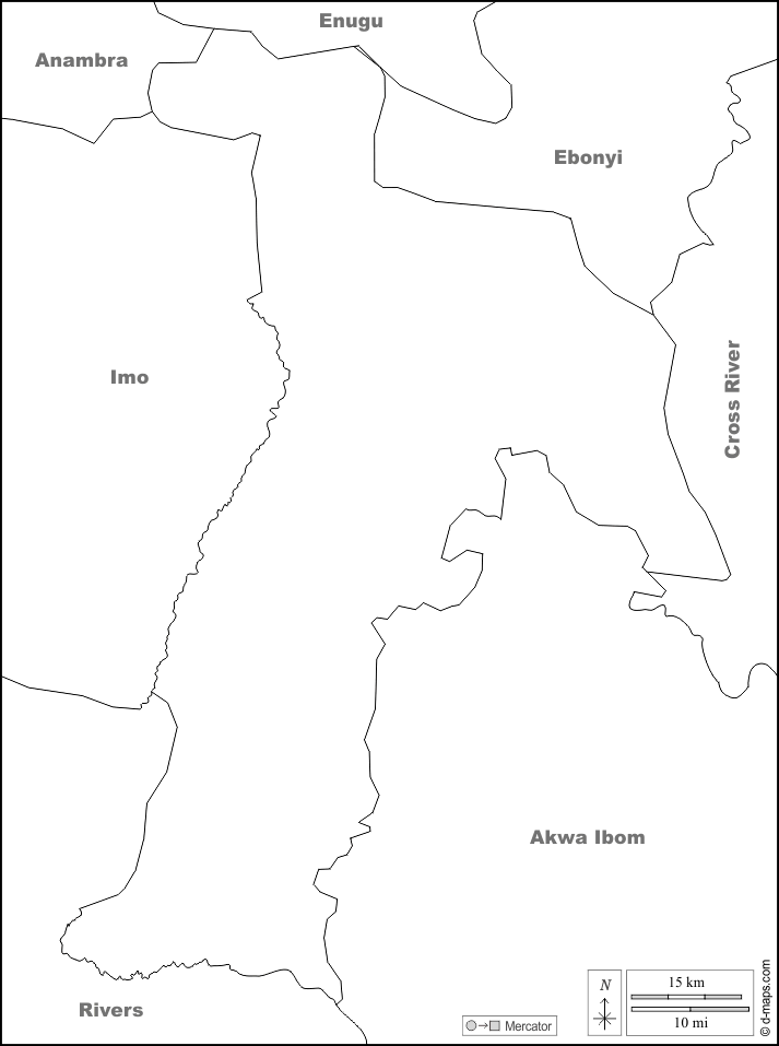 d-maps > Afrika > Nigeria > Abia > Grenzen, Namen, weiß