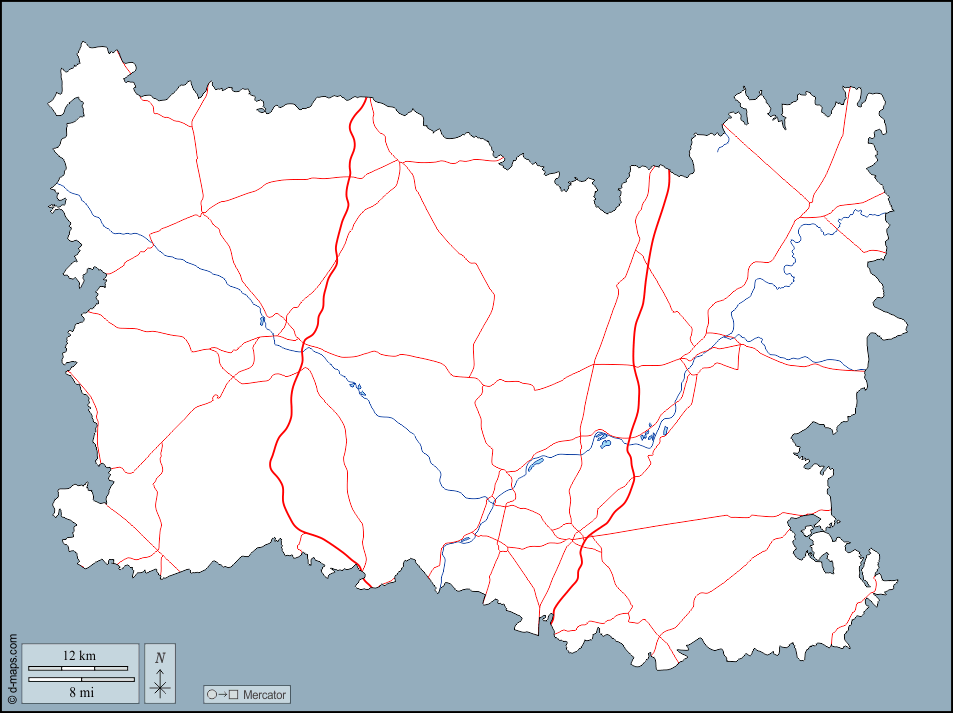 d-maps > Europa > Frankreich > Oise > Umrisse, Hydrografie, Straßen
