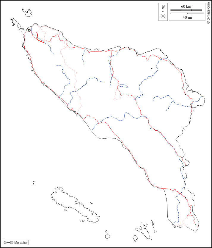 Asien > Indonesien > Aceh > Umrisse, Hydrografie, Wichtige Städte, Straßen, weiß