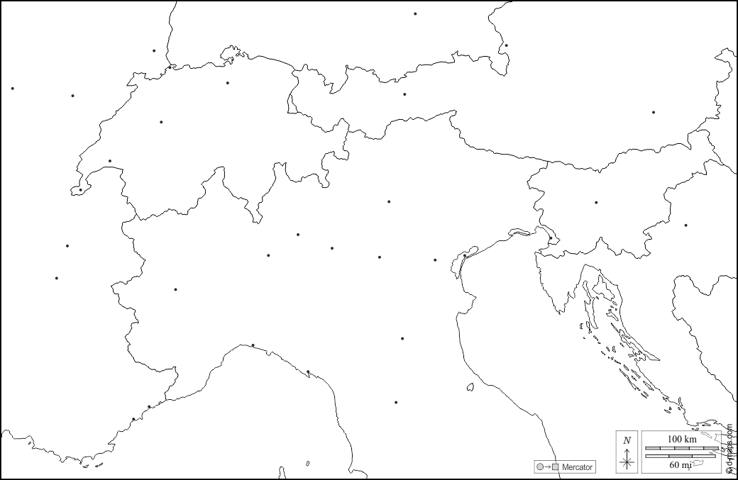 d-maps > Europa > Alpen > Länder, Wichtige Städte, weiß