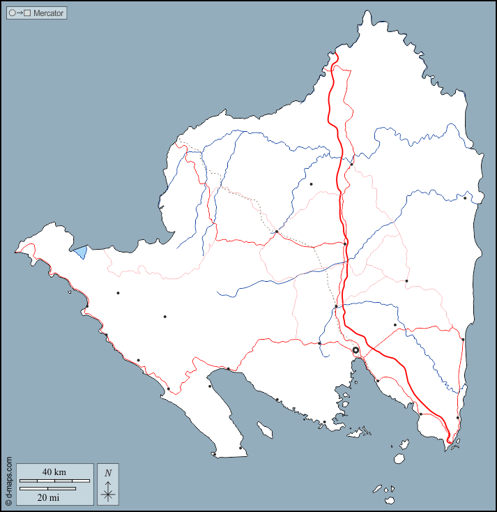 d-maps > Asien > Indonesien > Lampung > Umrisse, Hydrografie, Wichtige Städte, Straßen