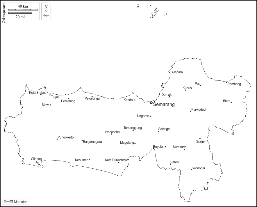 d-maps > Asien > Indonesien > Zentral-Java > Umrisse, Wichtige Städte, Namen, weiß