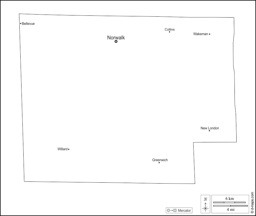 Vereinigte Staaten von Amerika (USA) > Ohio > Huron County > Umrisse, Wichtige Städte, Namen, weiß