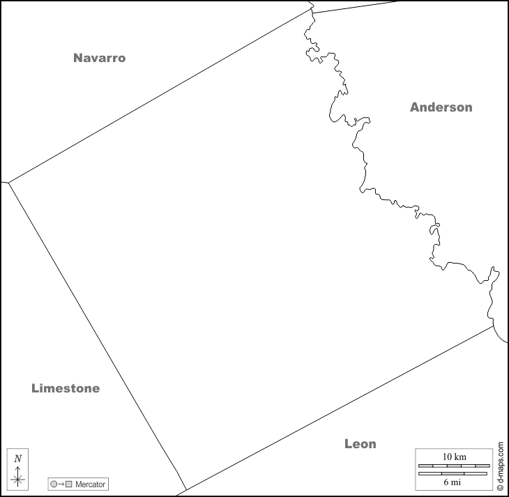 d-maps > Vereinigte Staaten von Amerika (USA) > Texas > Freestone County > Grenzen, Namen, weiß