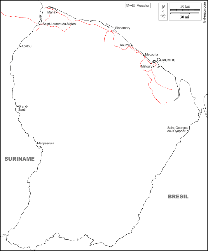 Europa > Frankreich > Französisch-Guayana > Grenzen, Wichtige Städte, Straßen, Namen, weiß