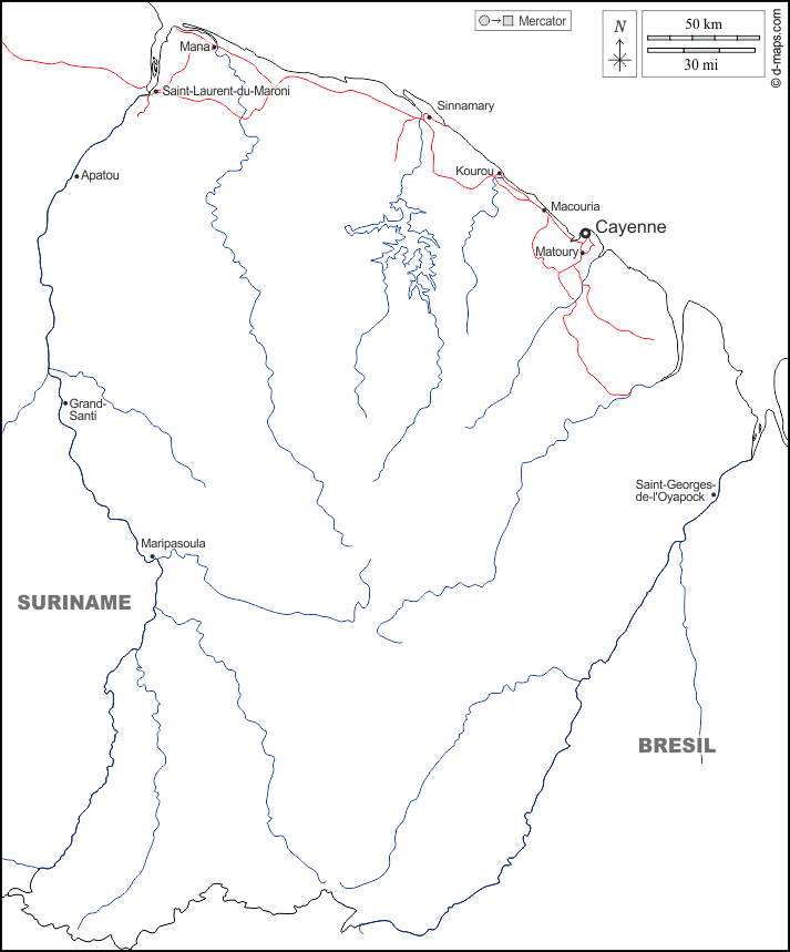 Europa > Frankreich > Französisch-Guayana > Grenzen, Hydrografie, Wichtige Städte, Straßen, Namen, weiß