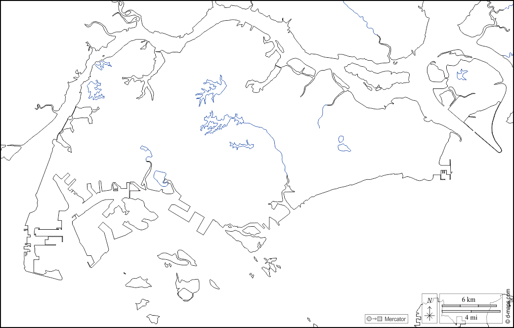 Asien > Singapur > Grenzen, Hydrografie, weiß
