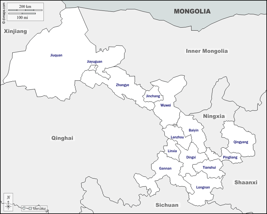Asien > China > Gansu > Grenzen, Präfekturen, Namen