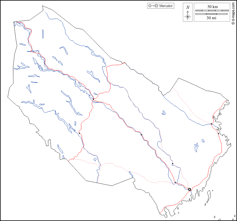 d-maps > Europa > Schweden > Västerbotten > Umrisse, Hydrografie, Wichtige Städte, Straßen, weiß