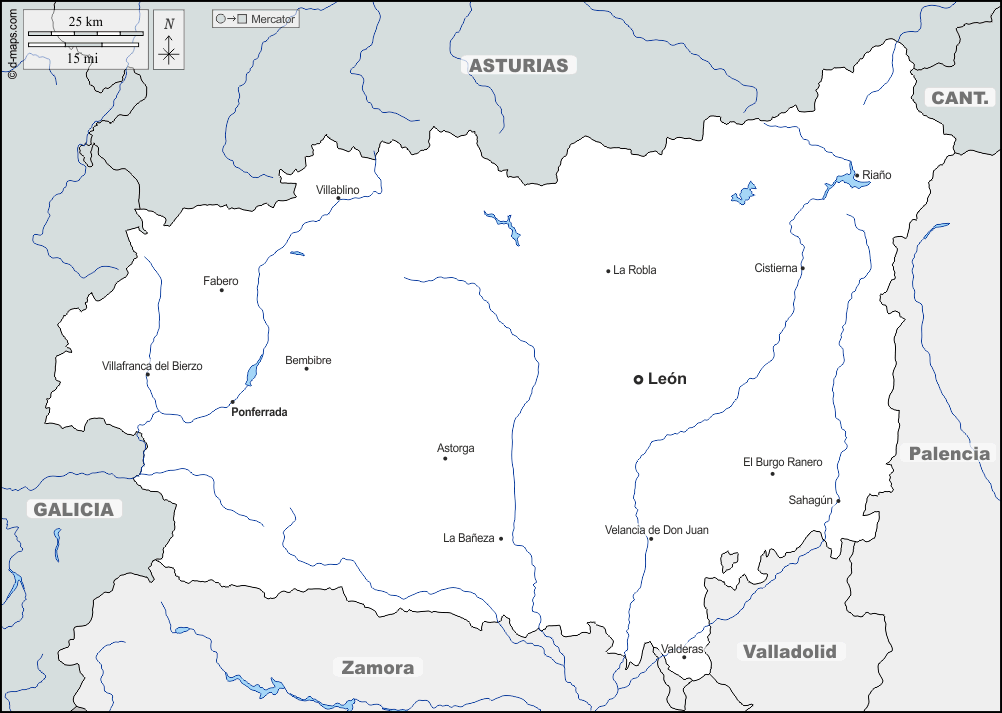 d-maps > Europa > Spanien > León > Grenzen, Hydrografie, Wichtige Städte, Namen