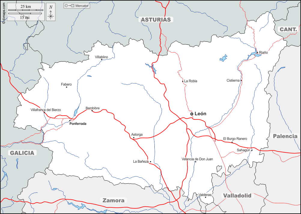 Europa > Spanien > León > Grenzen, Hydrografie, Wichtige Städte, Straßen, Namen
