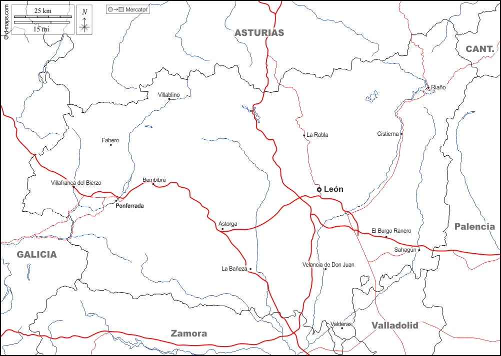 Europa > Spanien > León > Grenzen, Hydrografie, Wichtige Städte, Straßen, Namen, weiß