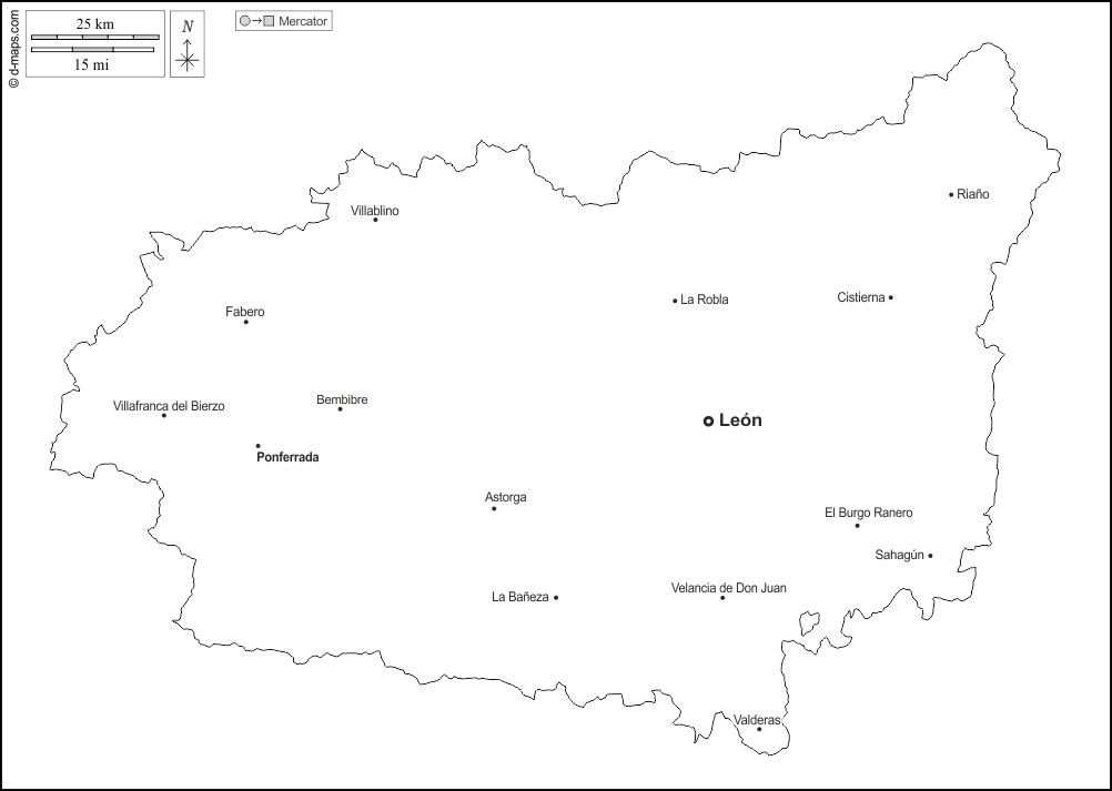 Europa > Spanien > León > Umrisse, Wichtige Städte, Namen, weiß