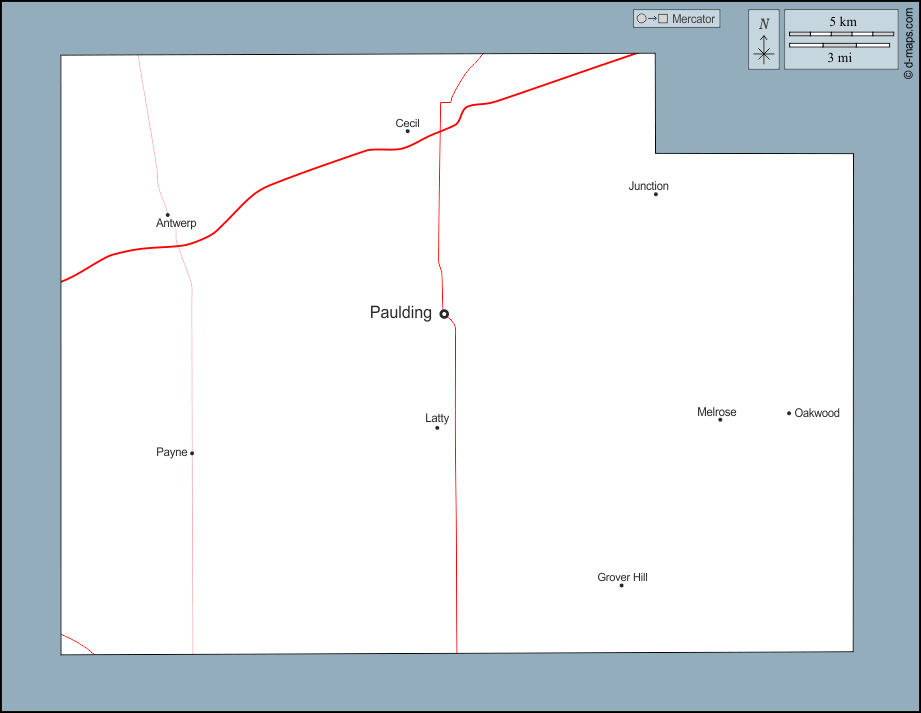 d-maps > Vereinigte Staaten von Amerika (USA) > Ohio > Paulding County > Umrisse, Wichtige Städte, Straßen, Namen