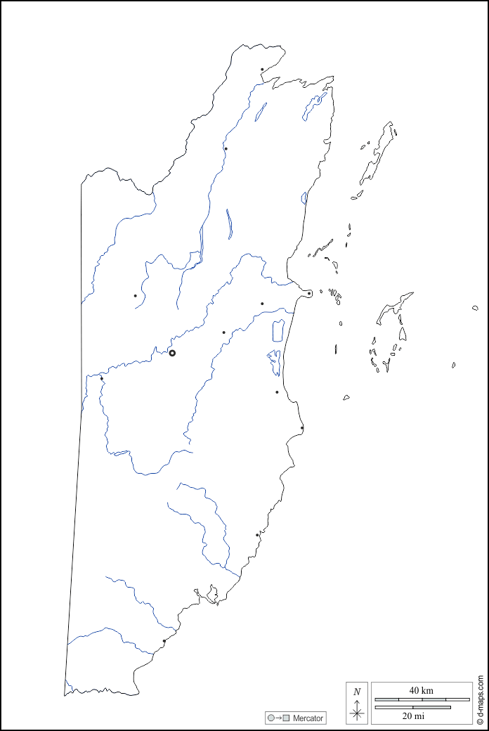 d-maps > Amerika > Belize > Umrisse, Hydrografie, Wichtige Städte, weiß