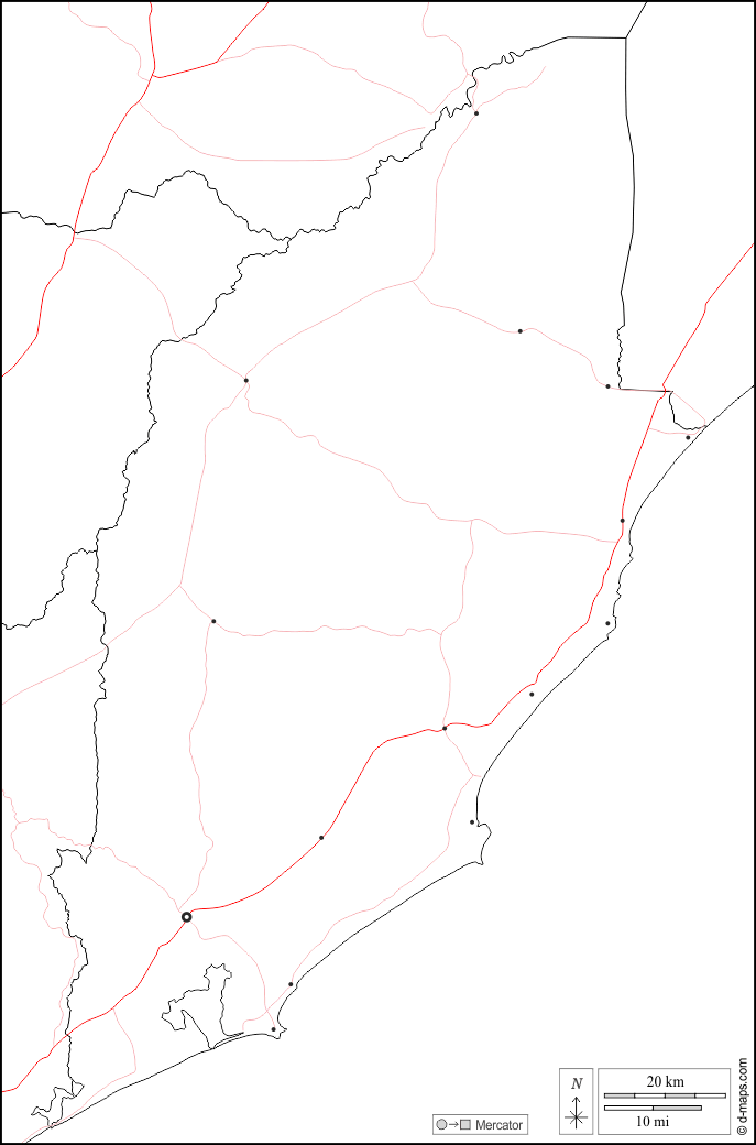 d-maps > Amerika > Uruguay > Rocha > Grenzen, Wichtige Städte, Straßen, weiß