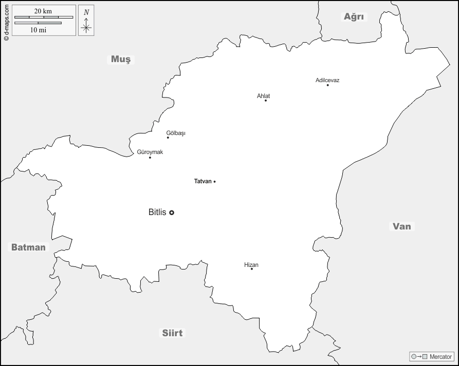 d-maps > Asien > Türkei > Bitlis > Grenzen, Wichtige Städte, Namen