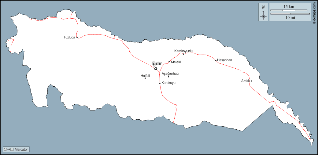d-maps > Asien > Türkei > Iğdır > Umrisse, Wichtige Städte, Straßen, Namen