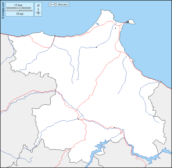 d-maps > Asien > Türkei > Sinop > Grenzen, Hydrografie, Wichtige Städte, Straßen