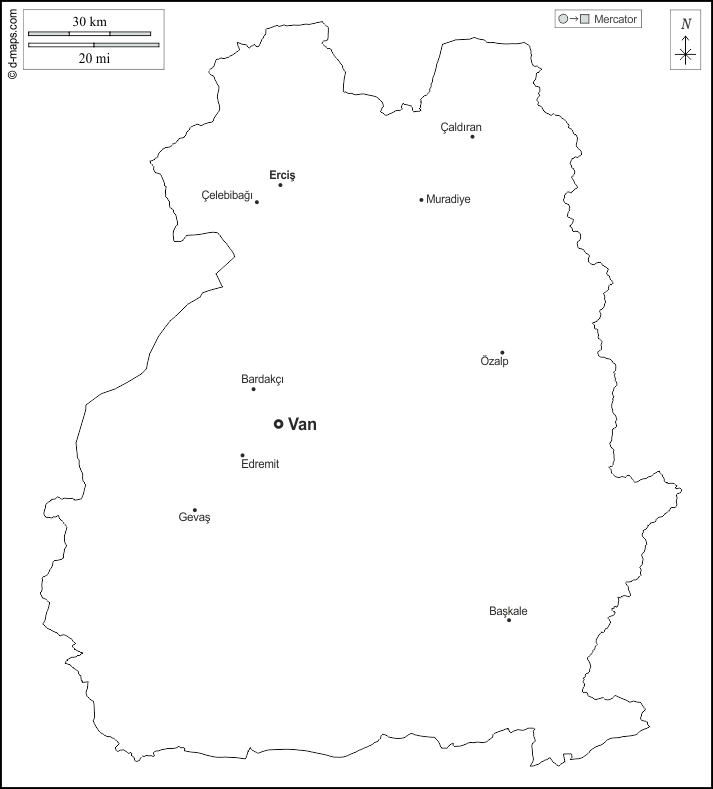 d-maps > Asien > Türkei > Van > Umrisse, Wichtige Städte, Namen, weiß