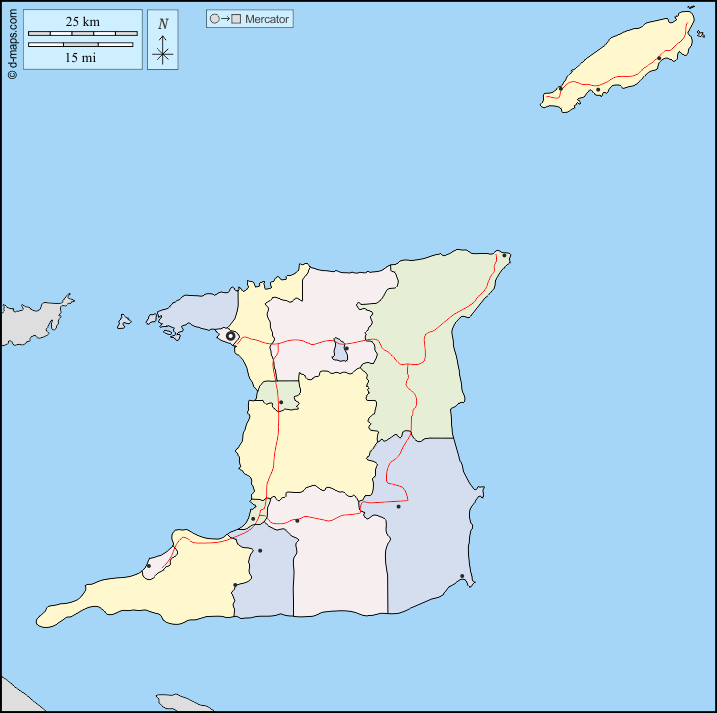 Amerika > Trinidad und Tobago > Grenzen, Abteilungen, Wichtige Städte, Straßen, Farbe