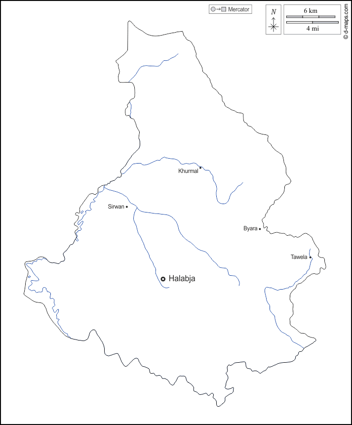 d-maps > Asien > Irak > Halabja > Umrisse, Hydrografie, Wichtige Städte, Namen, weiß