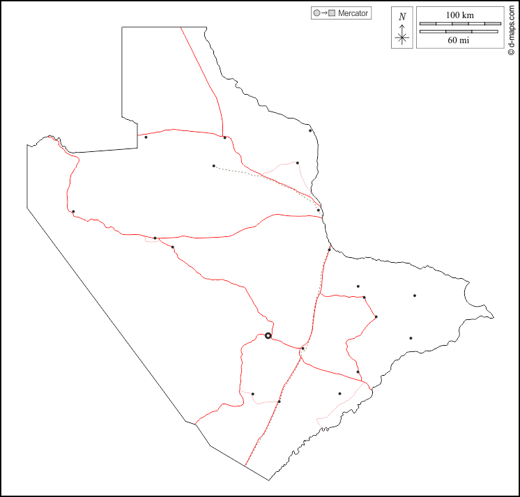 Afrika > Botswana > Zentral Distrikt > Umrisse, Wichtige Städte, Straßen, weiß