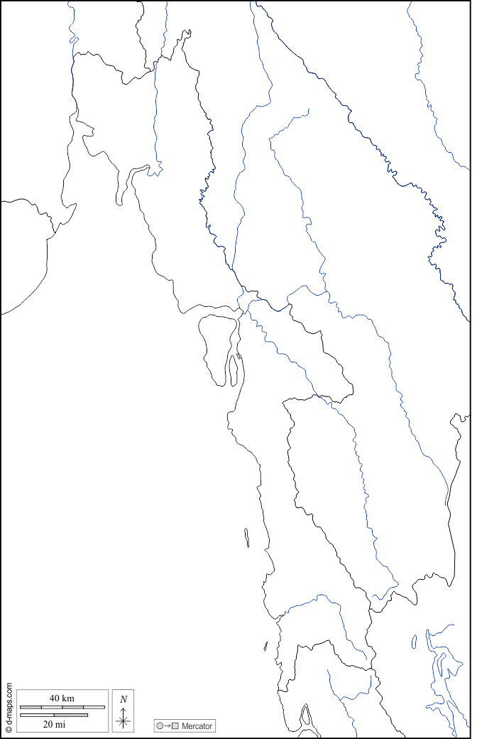 d-maps > Asien > Birma Myanmar > Mon-Staat > Grenzen, Hydrografie, weiß