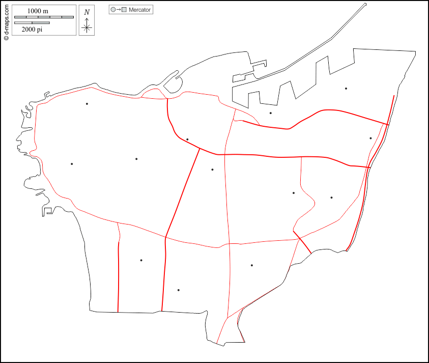d-maps > Asien > Libanon > Beirut > Umrisse, Wichtige Städte, Straßen, weiß