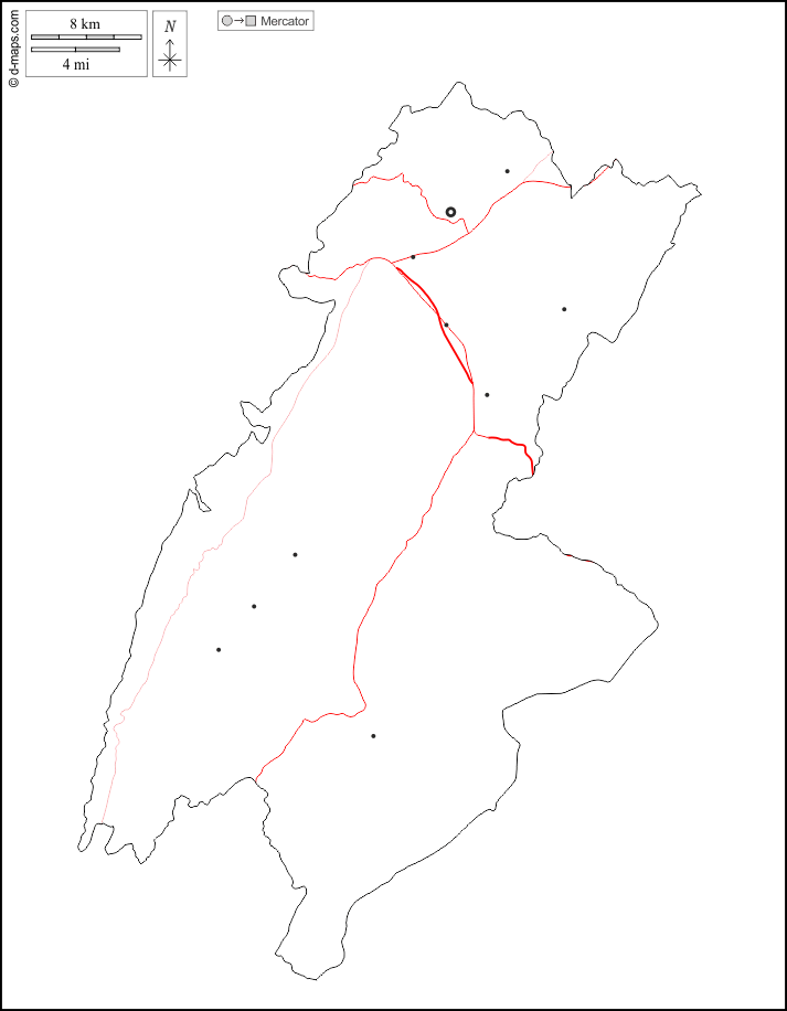 d-maps > Asien > Libanon > Bekaa > Umrisse, Wichtige Städte, Straßen, weiß