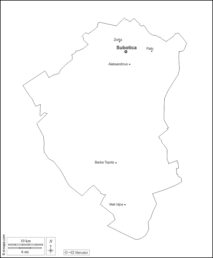 Europa > Serbien > Severna Bačka > Umrisse, Wichtige Städte, Namen, weiß