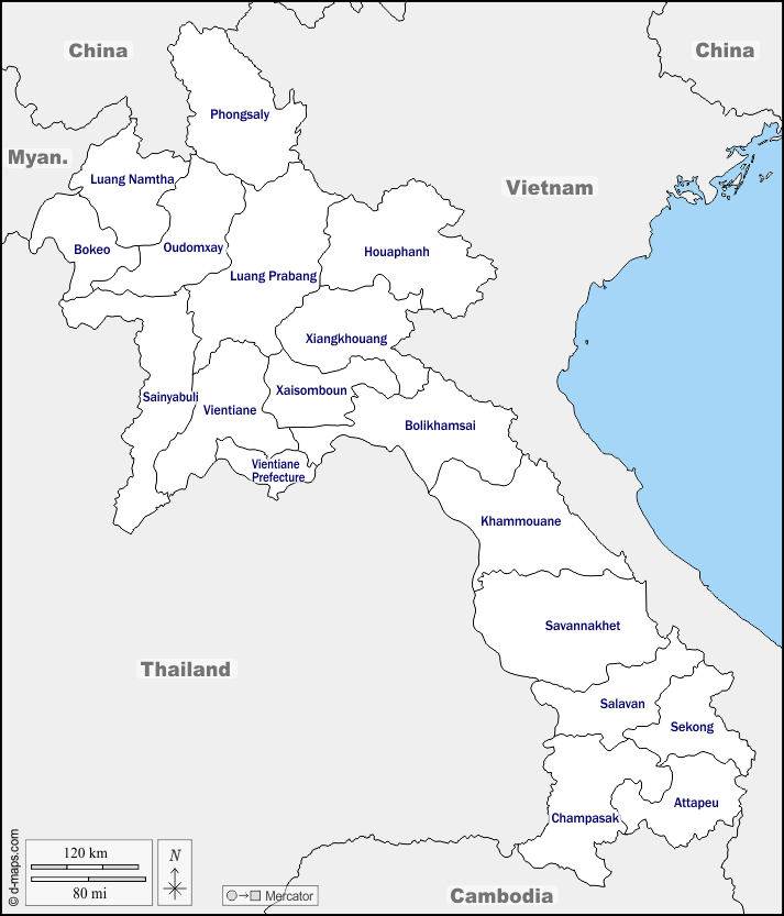 Asien > Laos > Grenzen, Hydrografie, Straßen