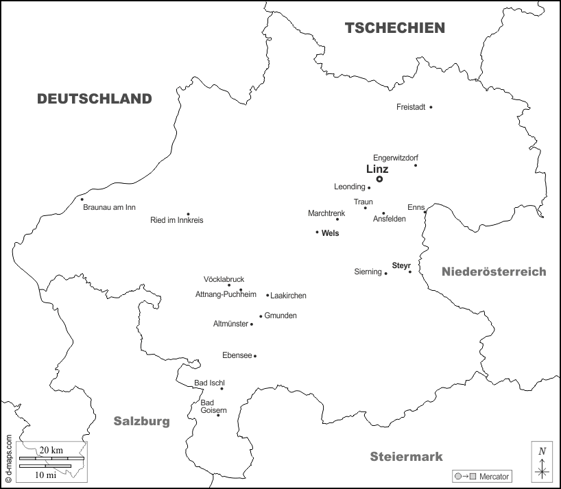 Europa > Österreich > Oberösterreich > Grenzen, Wichtige Städte, Namen, weiß