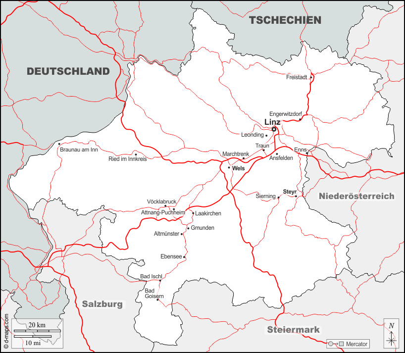 Europa > Österreich > Oberösterreich > Grenzen, Wichtige Städte, Straßen, Namen